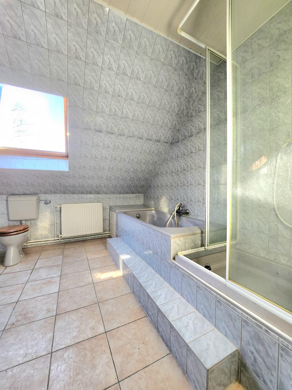 - ca. 10 m² (Grundfläche) großes Badezimmer mit Badewanne und Dusche sowie Dachfenster