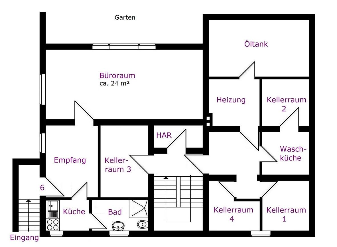 - ca. 24 m² großer Raum mit großer Fensterfläche über dem Erdboden