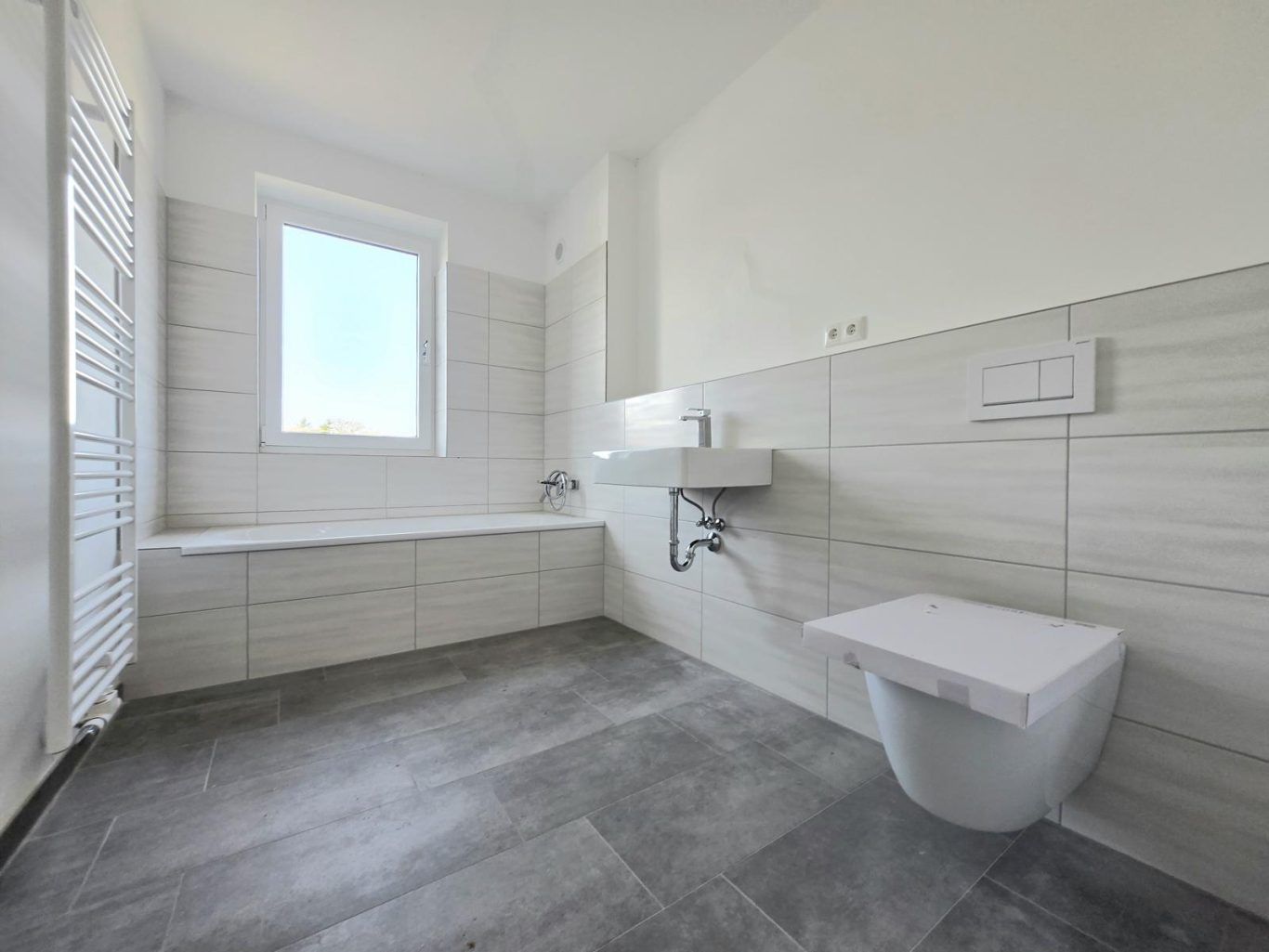 - Badezimmer mit Badewanne und Fenster (Bäder werden fertiggestellt)